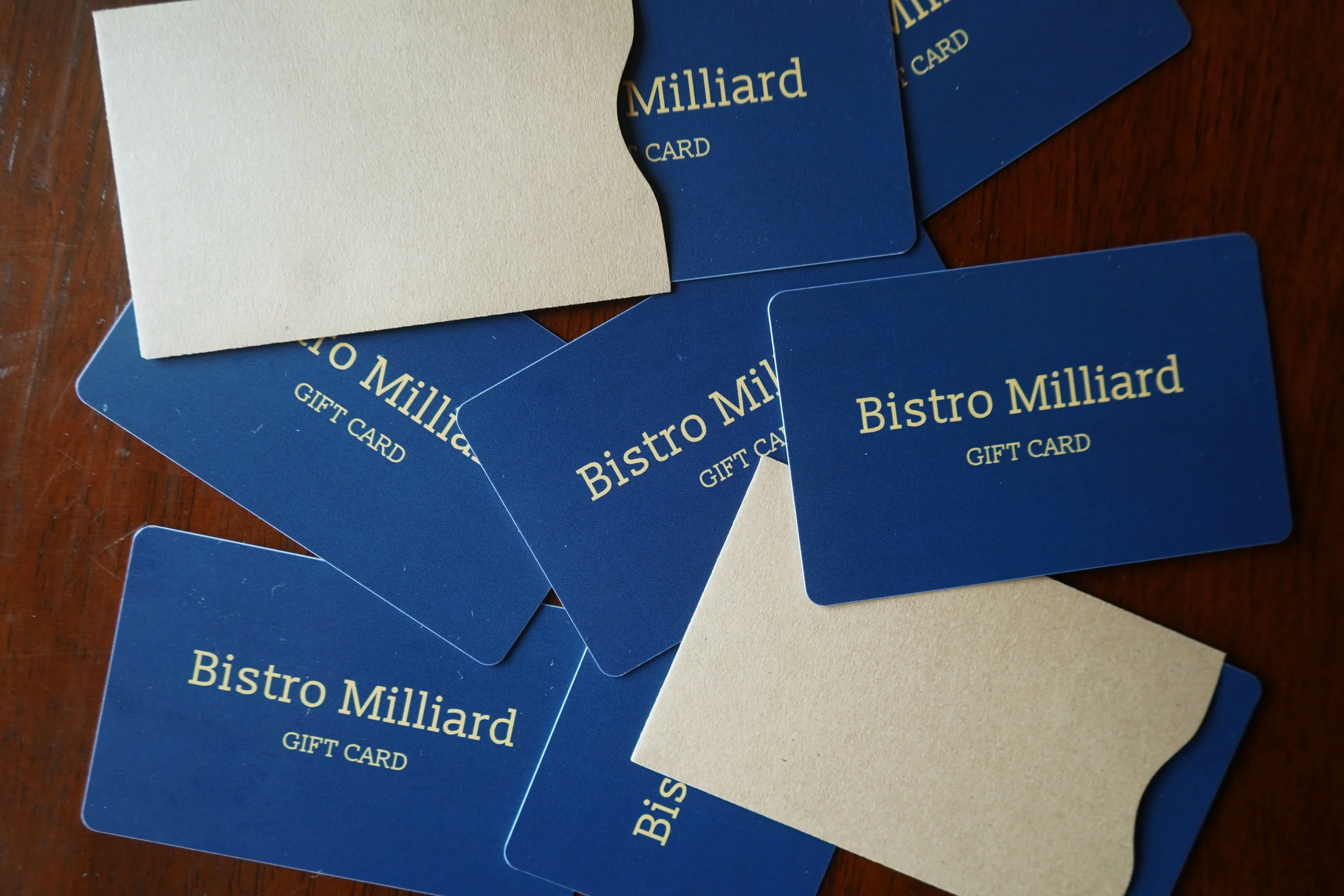 https://www.toasttab.com/bistromilliard/giftcards Click the link to purchase an E-gift card!For physical gift cards, please call 207-213-6479
